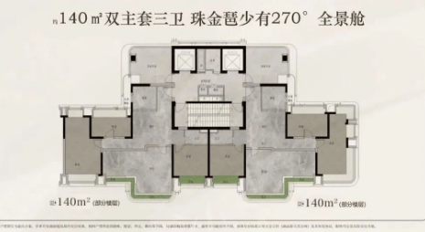 户型面积:建面约120-140-170-210平方米云幕平层