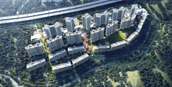 项目的设计灵感源自宋代名作《千里江山图》,由山水德比大师联袂匠造,旨在再现风雅宋韵的美学境界。步入小区,仿佛穿越时空,进入了一幅流动的山水画卷。“花溪-谷地-庭院-坊巷-幽径”五重景观体系层层递进,铺就了一条充满仪式感的归家路。三进归家礼序,呈现“道游于艺,艺合乎于道”的哲学意境,让每一次回家都成为一场心灵的洗礼。