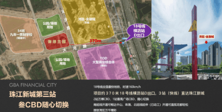 湾区金融城的一大亮点是其便捷的交通条件。项目紧邻地铁18号线横沥站,该线路串联了珠江新城、琶洲等重要商务区,实现了1站到万博CBD、2站到琶洲、3站到珠江新城CBD的快速通勤。未来,18号线还将延伸至中山、珠海等大湾区城市,进一步提升区域的交通枢纽地位。