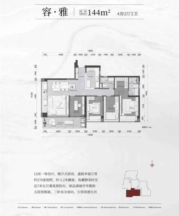144㎡四房两厅两卫(南向)