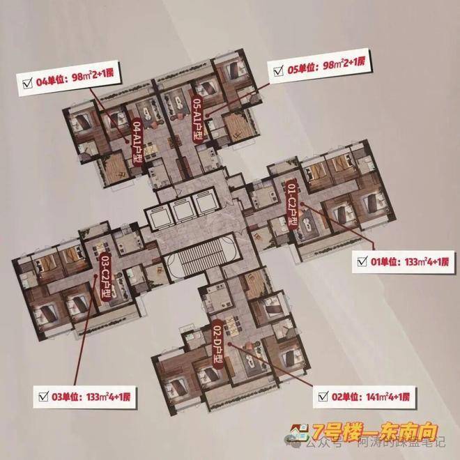 答:建面约133平方米与142平方米户型更适合改善型家庭、二孩及三代同堂家庭,强调空间尺度与功能分区。