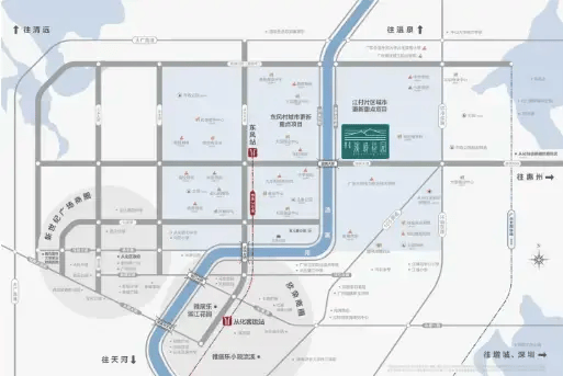 溪境花园位于从化区府、地铁14号线东风站、流溪河生态廊道交汇处,直线距离区府800米、地铁1.2公里、流溪河300米,兼顾行政配套、交通枢纽与自然景观。
