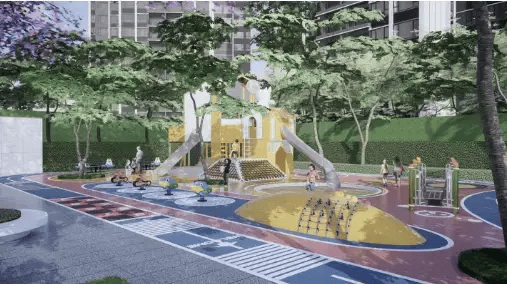 数据亮点:社区绿化率40%,打造“一轴三园八景”景观体系,包括5000㎡中央湖景、全龄儿童乐园、夜光跑道;