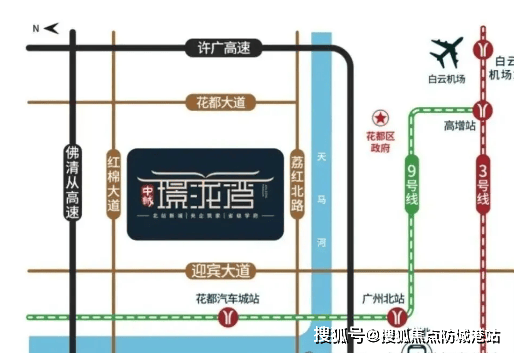 中诚璟泷湾位于花都区北站新城板块,地处迎宾大道毕村北路与茶岭路交叉口,占据白云机场和广州北站唯一空铁联运枢纽位置,地理位置优越,是花都重点发展的核心区域之一。交通配套完善,多维交通网络覆盖:轨道交通方面,周边有地铁 9 号线、地铁 24 号线(规划)、地铁 18 号线(规划),未来出行选择丰富;自驾出行可通过大广高速、许广高速、广州绕城高速、广佛江珠高速快速通达广州各区及周边城市;项目还配备专属楼巴,在家门口即可乘坐,8 分钟直达地铁站,有效解决 “最后一公里” 出行难题。从项目出发,约 10 分钟可达广州北站或区府商圈,约 20 分钟连接白云机场,接驳地铁后约 20 分钟抵达越秀中心,30 分钟直达广州 CBD,通勤高效便捷。