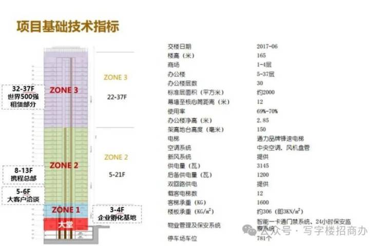 层高与空间:标准办公楼层高达到4.2米,创造了开阔的空间感。约2000平方米的标准层面积,结合约11米的柱间距,形成了大跨度、少柱网的空间格局。这意味着企业可以更自由地进行室内空间分隔与组合,满足开放式协作、独立办公室、研发实验室等多种功能需求。项目的实用率大约在65%-70%,这在高端写字楼中属于合理且较高的水平。