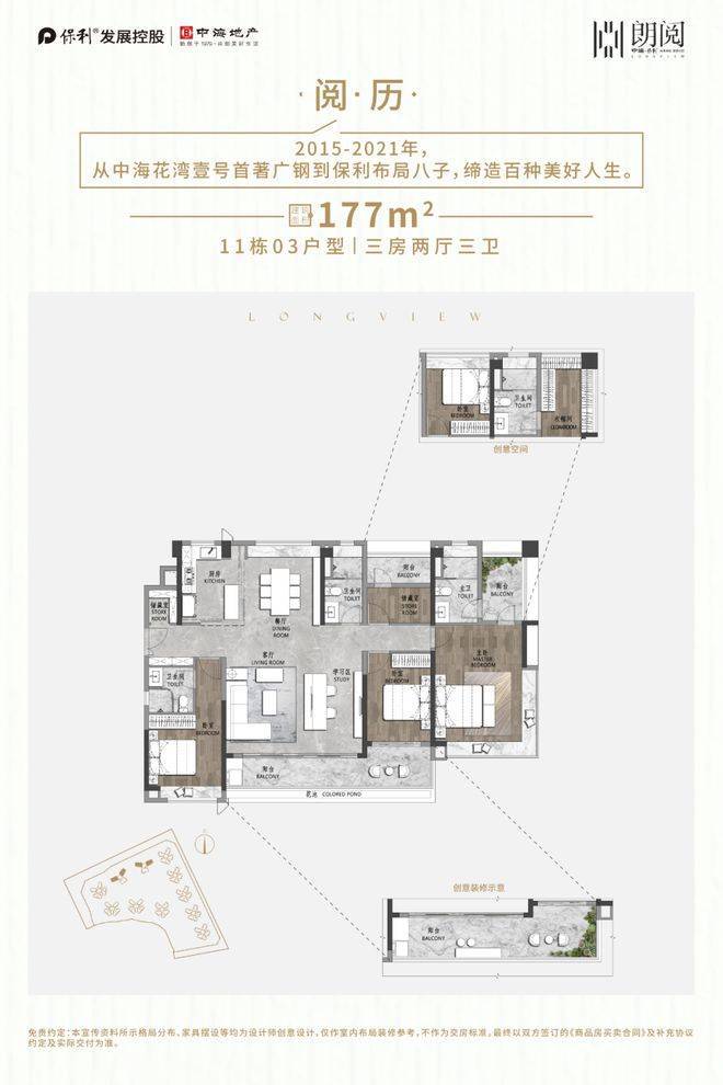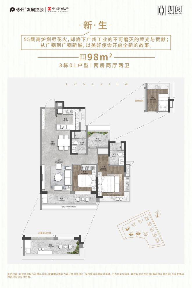 广州西部荔湾区近年来正在经历城市能级跃迁,尤其是白鹅潭—广钢新城—广船板块形成的城市发展带,正在成为广州国际化都市建设的重要承载区域。中海保利·朗阅正坐落于这一城市更新主轴之上,是由中海地产与保利发展双央企强强联合打造的高品质居住社区。我们(中海地产与保利发展)秉持高标准开发理念,项目整体定位为国际级CLD中央生活区住宅范本,致力于构建兼具居住舒适性、城市资源整合能力以及未来资产增值潜力的综合型社区空间。