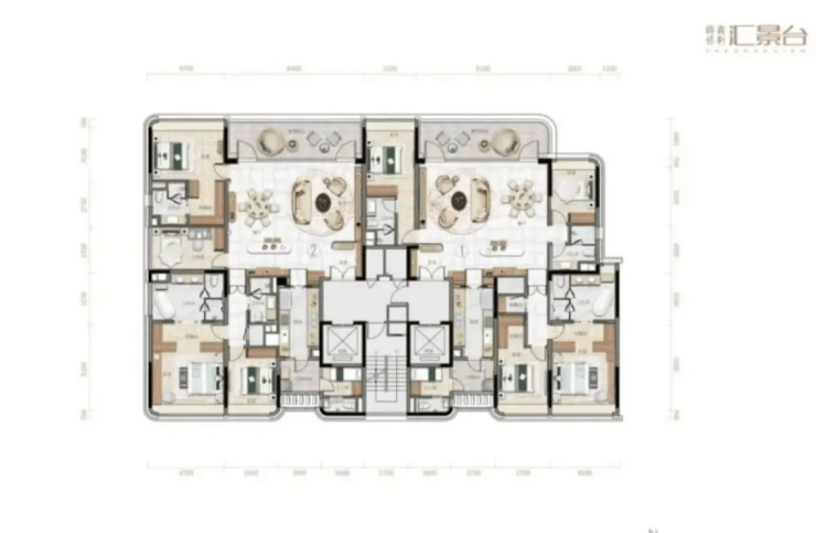 1栋 & 2栋:234-238㎡四房三卫,2梯2户纯板式设计,LDK一体化布局+大尺度观景阳台,私密性与通透感兼备。