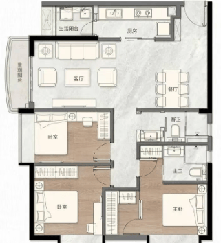 港汇台提供多样化的户型选择,面积从69平方米到144平方米不等,涵盖了两房至四房的不同户型,满足不同家庭的需求。每个户型都经过精心设计,注重空间利用效率与居住舒适度的平衡,户户双阳台,LDK一体设计,东南向望江赏景,为业主打造出一个温馨舒适的家。
