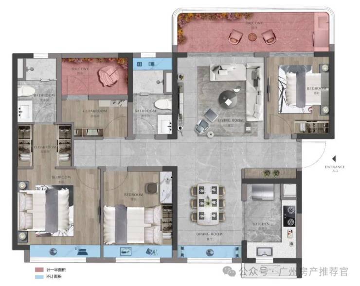 • 高配:主卧奢配独立步入式衣帽间、淋浴区、尊享高配私域
