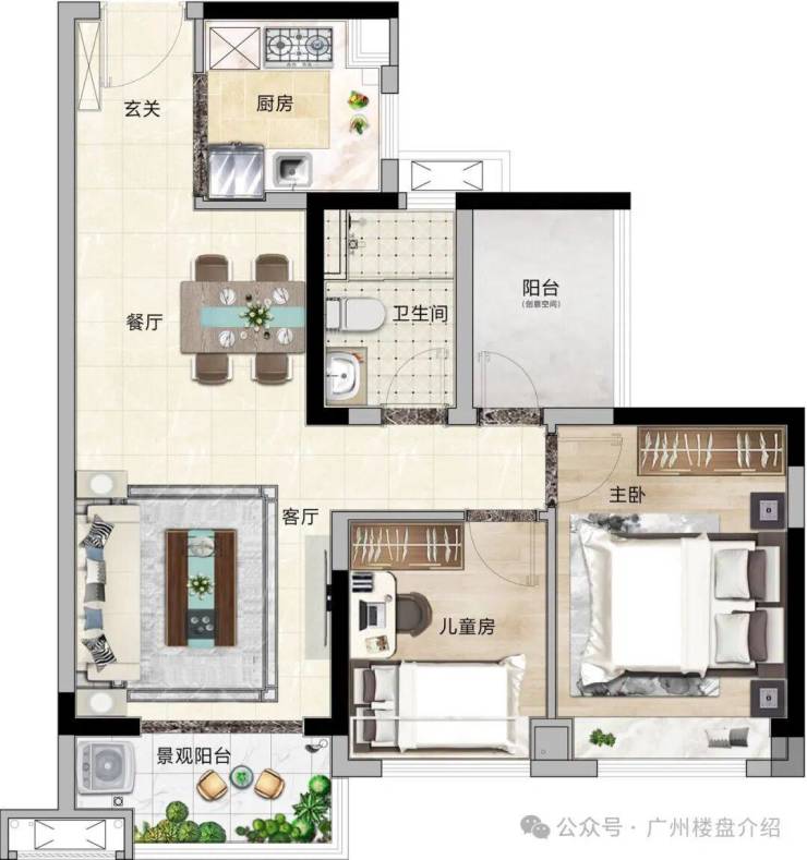 户型产品方面,项目主打中小面积刚需户型,总价控制合理,空间利用率高,适配新广州人置业、刚需首置、轻改善家庭等客群。主力户型包含 68 平方米两房两厅一卫产品,户型格局方正,功能分区清晰,客厅连接景观阳台,主卧朝南设计,U 型厨房布局提升操作效率,空间紧凑无浪费,是低总价上车优选户型。项目所有户型均遵循采光通风优先原则,合理规划开窗面与动线设计,保障户内自然采光与空气流通,减少潮湿与阴暗空间。户内动静分区明确,起居空间与休息空间互不干扰,提升居住私密性。精装交付标准统一,预留家电摆放位置与收纳空间,满足日常居住实用性需求。户型面积段控制精准,总价 67 万起即可入手,首付门槛与月供压力相对可控,兼顾自住舒适度与资产流动性,是广州东部高性价比户型产品代表。