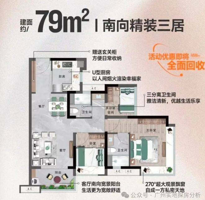项目户型设计灵活,涵盖建面约70至92平方米的三至四房户型,户型方正,动静分区明确,干湿分离布局合理。部分户型配有入户花园或景观大飘窗,最大限度提升空间利用率与居住舒适感。项目得房率高达90%,充分体现越秀地产对居住品质的重视,无论是刚需购房者还是改善型客户,都能在户型选择上找到适合自身需求的理想方案。精装标准统一,选材高端且实用,为业主节省装修时间与成本,同时也确保交付即入住的便利。