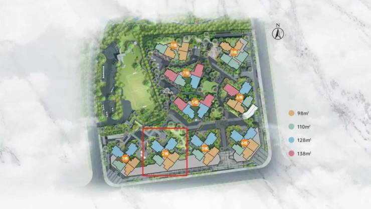 项目当前主推三期【玖璋】组团,均为全南向排布的低密小高层,楼层高度11-15层,1-2层为商业配套,主力户型采用2梯5户设计,部分楼栋为2梯3户,私密性与舒适度更高。主力户型涵盖98㎡3室2厅2卫、110㎡4室2厅2卫、128㎡5室2厅2卫等,得房率超92%,实用率领先周边竞品。