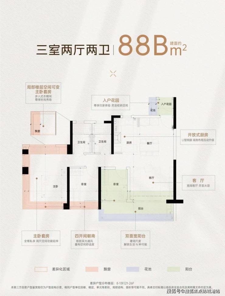 105㎡四房两厅两卫:南北对流户型,独立入户花园+约5米宽厅,主卧带L型超7米转角飘窗,二孩家庭或三代同堂都能住得舒适。