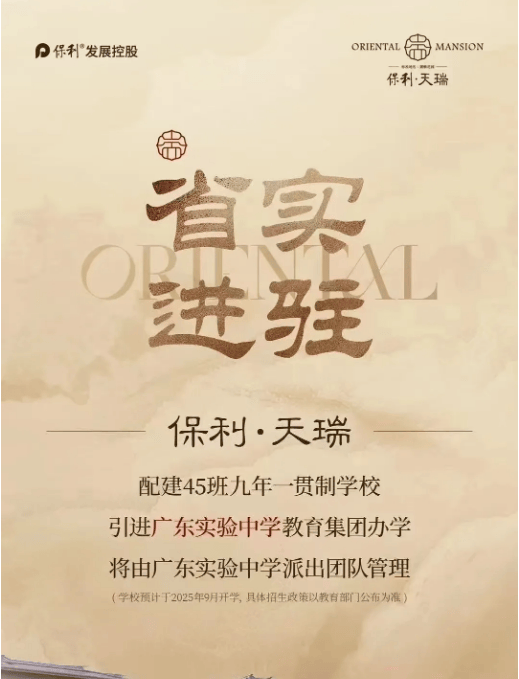 A3:项目配建的45班公办九年一贯制学校(省实教育集团办学),预计2025年9月开学,目前学校建设已基本完成,正在进行师资配备与设备调试。具体招生政策以当年教育部门公布为准,一般情况下,项目业主子女可优先就读,招生范围、入学条件等,将根据天河区教育部门的相关规定执行,后续可关注教育部门与项目官方发布的最新消息,也可致电官方售楼部咨询详细情况。