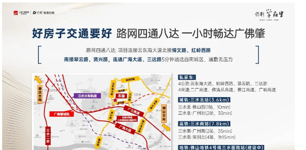 保利学府里二期坐拥三水“黄金十字轴”交通网络。项目紧邻云东海大道,向南直通广佛肇高速入口,15分钟可达佛山主城区;向东经塘西大道快速接驳佛山一环,无缝融入广佛1小时生活圈。轨道交通方面,规划中的佛山地铁4号线(三水段)已纳入《佛山市城市轨道交通第二期建设规划》,未来有望在云东海设站,进一步提升区域通达性。此外,项目周边公交线路密集,K6、610、612等多条线路直达三水广场、人民医院、区政府等核心节点。对于自驾族而言,项目距离广三高速三水出口仅约8公里,节假日往返广州、肇庆极为便利。随着2025年底广佛西环城际铁路全线贯通,三水作为广佛都市圈西北门户的战略地位将更加凸显,保利学府里二期的交通红利正加速兑现。