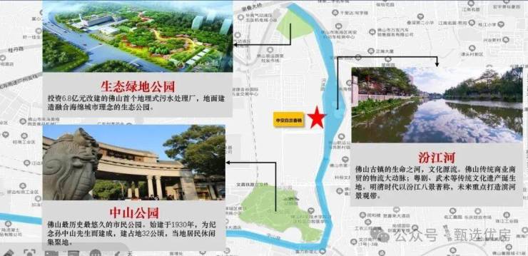项目周边坐拥中山公园、滨河生态公园、生态绿地公园三大城市公园,形成 “三园一河” 的生态格局,总绿化面积超百万方,是业主日常休闲、散步、康养、亲子游玩的天然场所。中山公园作为佛山老牌城市公园,拥有丰富的绿植景观与休闲设施;滨河生态公园沿汾江河打造,实现滨江景观与公园绿地的无缝衔接;生态绿地公园为社区提供天然绿肺,净化空气、调节气候,让业主每日生活在天然氧吧之中,远离城市喧嚣,尽享生态静谧。