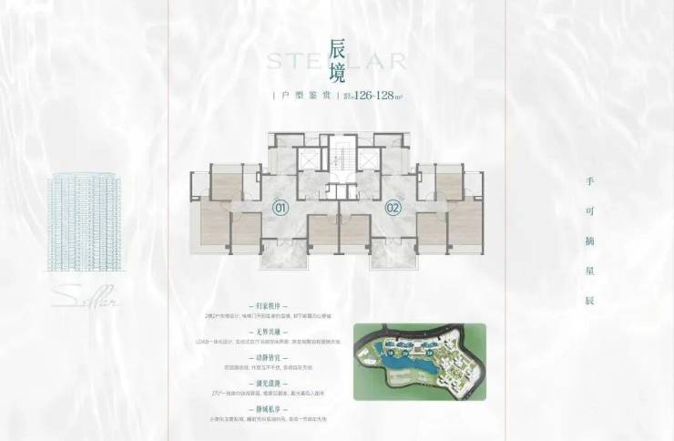 景观设计:3栋板楼直面映辰湖,270°观景阳台将湖光山色引入室内;塔楼户型采用三开间朝南设计,确保每户均有充足日照。