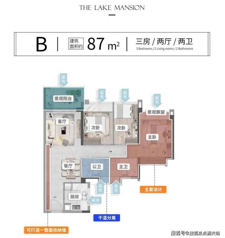 89㎡三房两卫:南北通透,主卧套房设计,得房率82%(竞品普遍78%)。