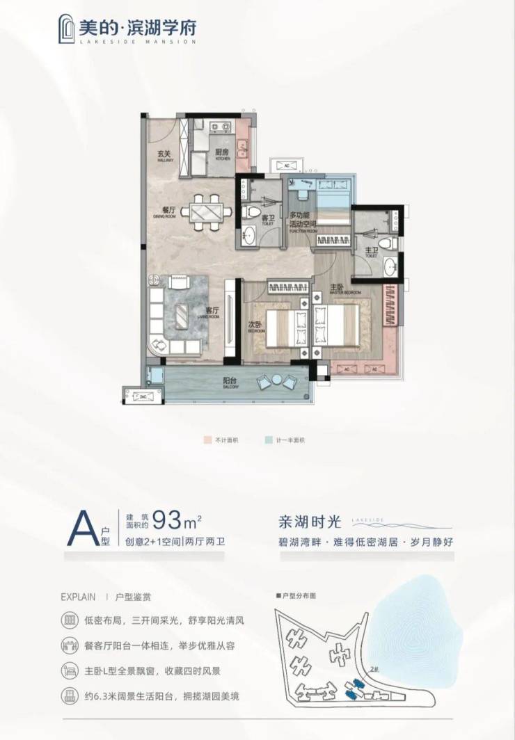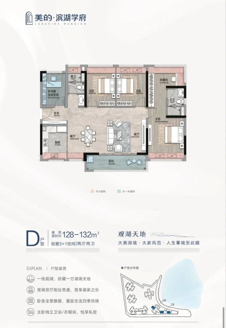 产品:容积率2.5低密社区,98-143㎡湖景三至四房,全屋智能精装