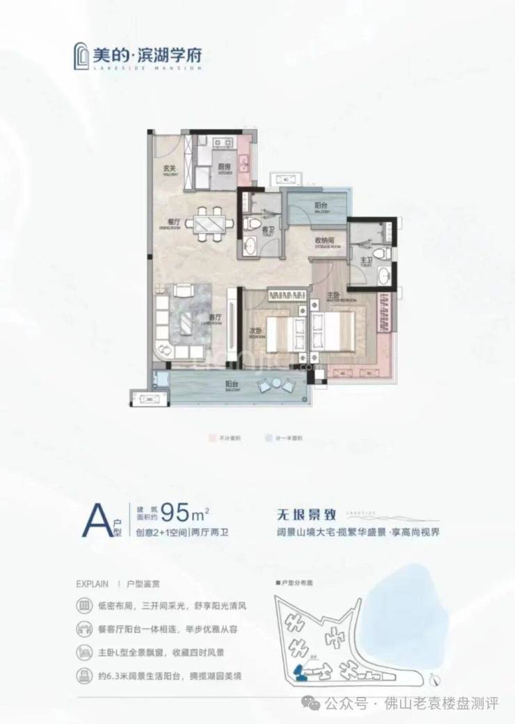 得房率科普:得房率是指套内建筑面积与销售面积之比。传统住宅的得房率通常在 75%-80% 之间,而美的・滨湖学府通过飘窗全拓展、阳台半赠送、设备平台改造等创新设计,将得房率提升至95%-100%。这意味着,您购买的 93㎡房子,实际可使用面积可能接近 90㎡,相当于传统 110㎡的房子,性价比极高。