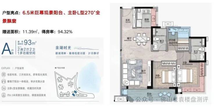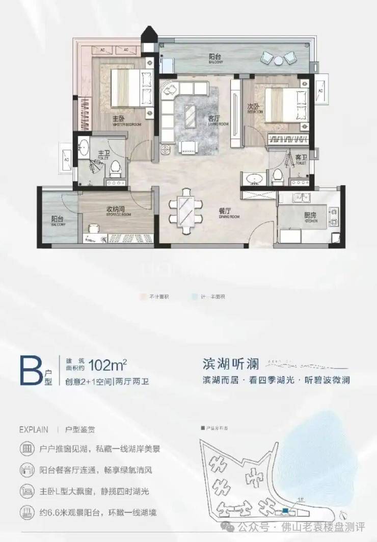 A:主力户型包括 93-95㎡三房、102㎡三房、115-117㎡四房、143-147㎡四房。得益于佛山新规设计,整体使用率高达 95%-100%,空间利用率远超同板块传统户型。
