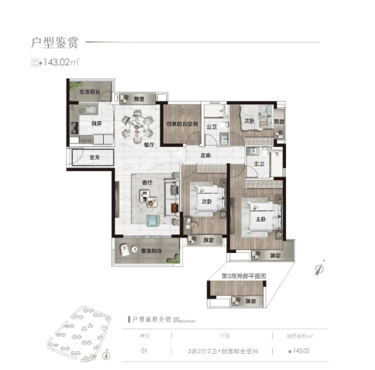 宏宇天御江畔提供了多种户型选择,面积从83平方米到143平方米不等,涵盖了一至四居室等多种家庭结构的需求。例如: