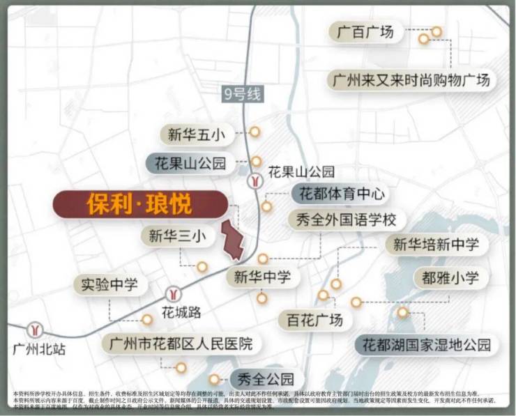 出门云山大道,约1km许广高速口串联广州市区;距地铁9号线花果山公园站(约400m),1站花都广场,2站广州北站;6站转乘3号线直达天河