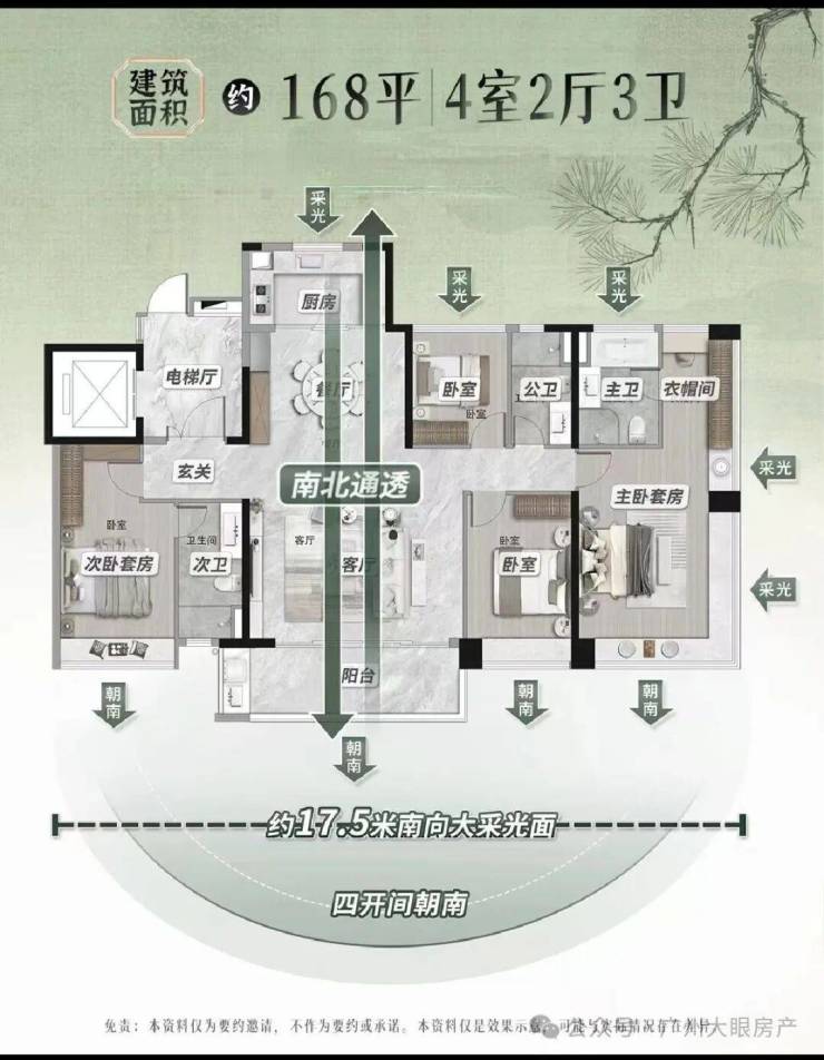 天青(建筑面积约168㎡·四房双主套)