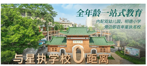 答:小区内有明德广地实验学校(民办,业主可读),配建公立幼儿园,对口南村汇贤小学、侨联中学,全龄教育需求均可满足。