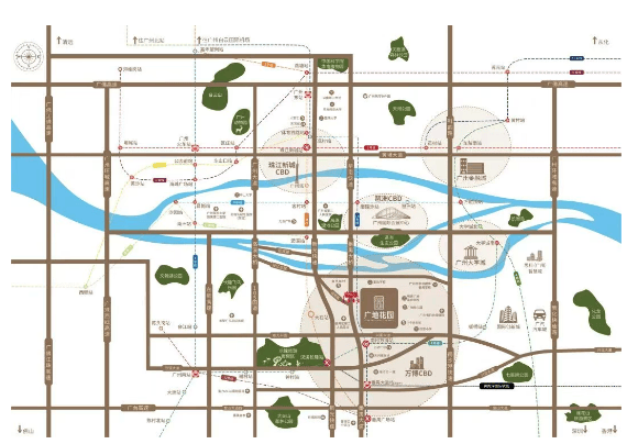 答:自驾 15 分钟到珠江新城,楼巴 7 分钟到南村万博站,1.6 公里直达万博商圈,无论自驾还是公共交通都很便捷。