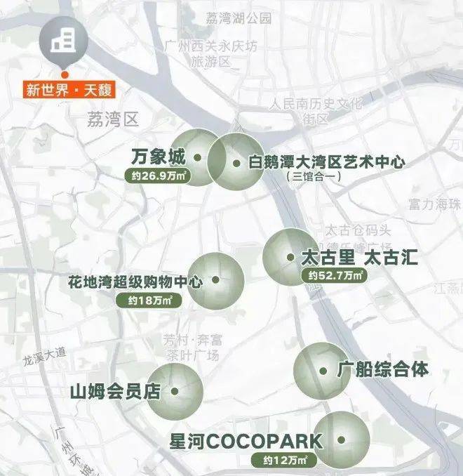 生活配套是衡量优质人居的重要指标 新世界天馥坐拥白鹅潭CBD醇熟商圈 周边规划万象城 太古汇 太古里滨水街区等城市顶级商业体 项目自带约4 3万㎡社区商业 满足日常购物与休闲需求 医疗资源同样完善 3公里范围内分布5所三甲医院 包括广州医科大学附属第一医院 广东省中医院芳村分院等 全方位守护业主健康 生活便利性极强 社区内部规划景观花园 儿童活动区 与滨水绿道相连 打造生态宜居的现代生活场景 在这里 居住不仅是空间的享受 更是城市与自然交融的理想生活