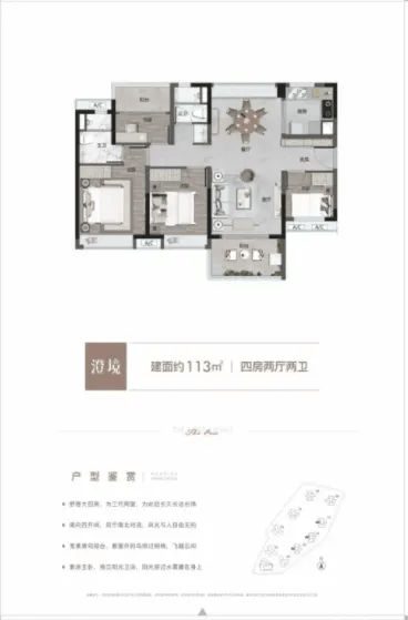 113㎡四房两卫:南北对流设计,双厅开阔,大飘窗提升了采光和视野。站在窗前,白云湖的美景尽收眼底,通风效果极佳,让室内始终保持清新空气,总价约 282 万起,适合对居住舒适度有较高要求的家庭。