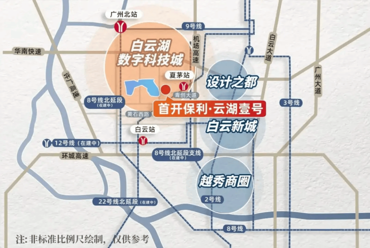 从投资角度来看,白云湖数字科技城作为广州重点发展的产业平台,产业集聚效应显著,人口红利持续涌入,未来房产升值空间巨大;地铁 22 号线、24 号线的规划建设,将进一步提升项目的交通优势,带动房产价值提升;区域配套的不断完善,也让项目的居住价值和投资价值同步增长。