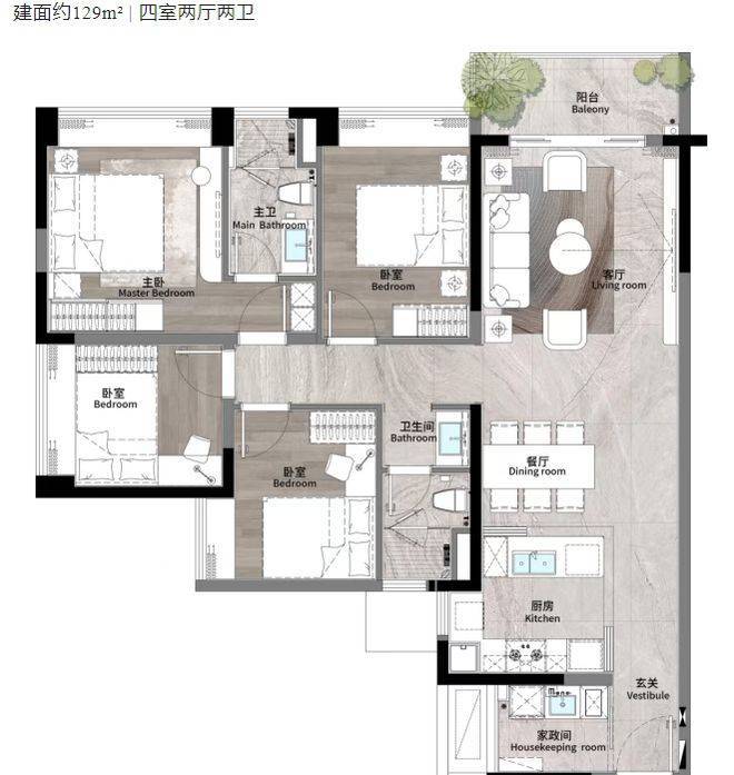 6. 户型产品解析:129-180㎡奢阔四房,重新定义空间尺度
