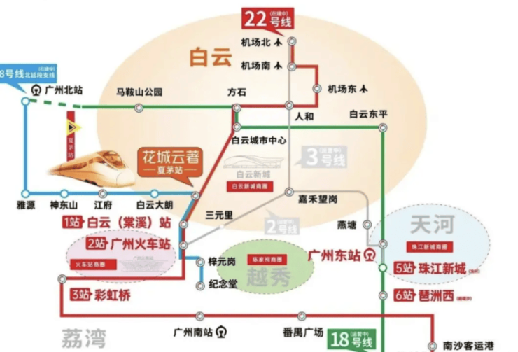 其中,地铁二十二号线被誉为广州的“南北大动脉”,其设计时速高达一百六十公里,是目前广州最快的地铁线路之一。这条线路的战略意义非凡,它串联起了广州南站、白云站、白云机场等重要交通枢纽,以及番禺广场、白鹅潭、白云湖等重点发展区域。对于公交珠实花城云著的业主而言,乘坐二十二号线,仅需一站即可直达白云站,轻松换乘高铁通往全国各地;三站即可进入老荔湾核心区,感受西关风情;若需前往珠江新城 CBD 上班,只需换乘十八号线,五站即可直达冼村站。这种跨区域的快速连接能力,极大地拓展了业主的活动半径,让工作在天河、居住在白云成为一种轻松惬意的生活方式,彻底打破了传统通勤的时空限制。