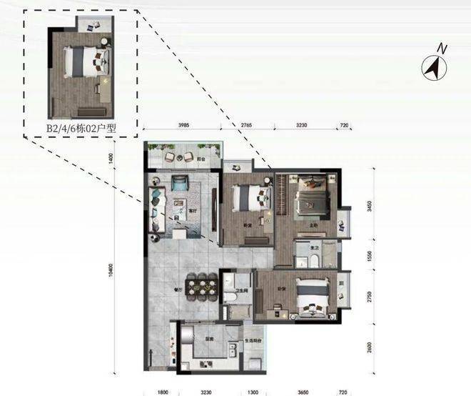 128㎡三房两厅两卫:该户型空间更为阔绰,客厅与餐厅的一体化设计,使公共空间更加大气。主卧套房设计,拥有独立卫生间和衣帽间,为业主提供舒适的居住体验。次卧和书房空间宽敞,可满足不同家庭成员的生活与学习需求。厨房采用 U 型设计,操作台面充足,烹饪更加得心应手。阳台面积较大,可作为休闲区域,摆放桌椅,享受阳光与美景。