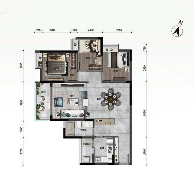 110㎡三房两厅两卫:延续了空间宽敞、功能齐全的特点。客厅开间较大,可放置舒适的沙发、茶几等家具,营造温馨的家庭氛围。主卧配备独立卫生间,增加了生活的便利性与私密性。次卧和书房的设计灵活,可根据家庭需求进行调整,如打造儿童游乐区或家庭影院等。餐厅空间可容纳多人用餐,适合家庭聚会。阳台视野开阔,可欣赏小区园林或周边自然美景。