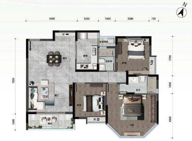 97㎡三房两厅一卫:在空间尺度上更为宽敞,三房设计可满足家庭不同阶段的需求。客厅与餐厅一体化设计,营造出开阔的公共活动区域,方便家庭聚会与休闲娱乐。主卧空间较大,可放置大型衣柜,满足收纳需求。次卧和书房可根据家庭实际情况灵活使用,如儿童房、老人房或工作学习空间。卫生间干湿分离,提升生活品质。阳台连接客厅,采光通风俱佳。