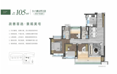 建面约105㎡四房两厅:宽敞舒适,适合中大型家庭。