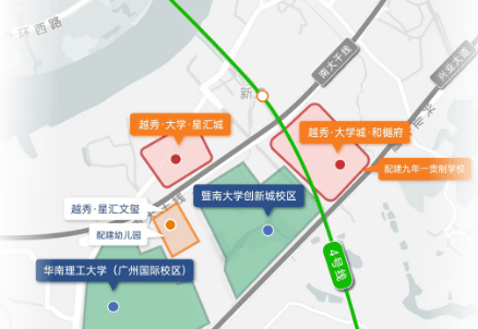 越秀·大学·星汇城由深耕广州41年的越秀地产开发,致力于打造一个融合人文与自然的人居典范。项目坐落于国际创新城的核心启动区,毗邻多所知名高校,形成了浓厚的学习氛围和科研文化。