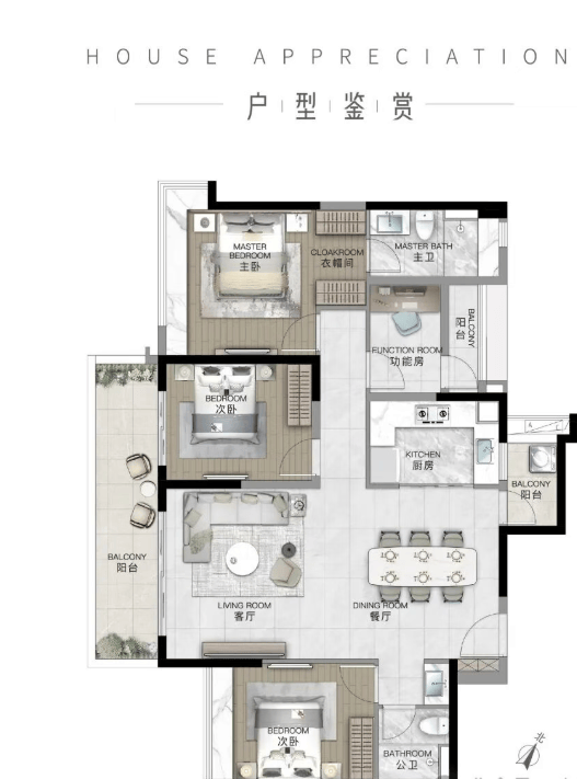 建面约128㎡ 3+1房2厅2卫:LDKG超长通厅设计,畅享健康生活,约13.9m超大南向采光面。
