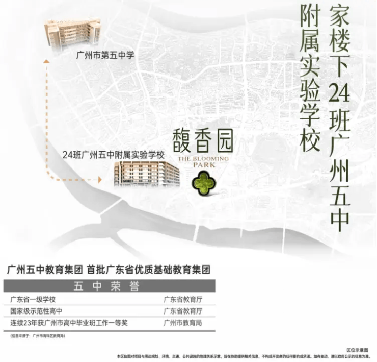 小区配建24班公立小学,由广州五中教育集团领办,2026年开学;