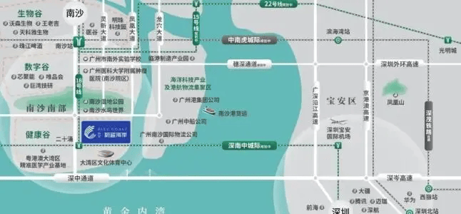从交通来看,项目周边交通网络四通八达。除了地铁18号线南延线和深中通道南沙线外,还有广澳高速、南沙港快速等多条高速线路环绕,30分钟可达广州番禺、佛山顺德等区域,1小时内通达大湾区“9+2”核心城市。此外,深南中城际规划将二十涌站升级为湾区交通枢纽,串联深圳、珠海、广州三大城市,覆盖大湾区六大机场,未来业主可实现“地铁半小时内畅达广州、深圳、中山、珠海”的通勤目标。