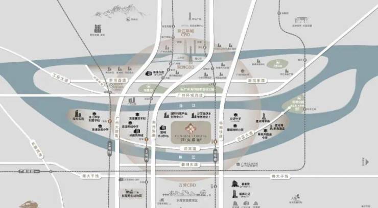 龙湖亚伦央璟颂坐落在番禺区洛浦街道,靠近珠江新城,拥有便捷的交通连接和优美的自然景观。项目南向可欣赏三支香水道的美景,与大石隔江相望;北向在天气晴朗时甚至可以看到珠江新城的天际线。周边聚集了多个老牌豪宅社区,营造出浓厚的高端居住氛围。