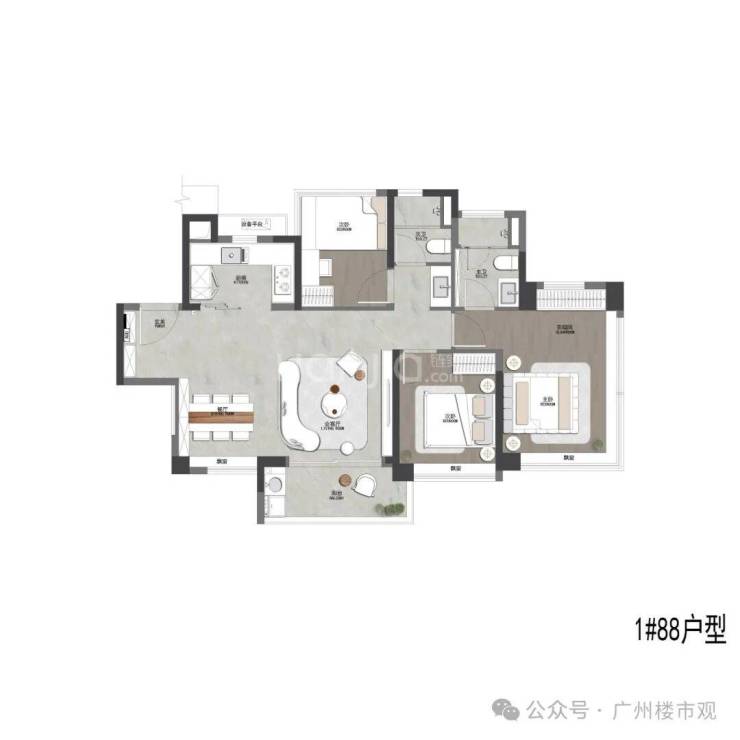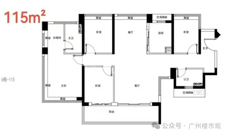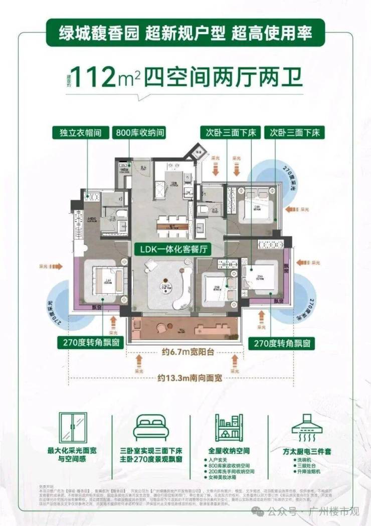 2. 全南向布局:除115平及以上户型为南北对流外,其余户型均为全南向布局,确保每一户都能拥有充足的采光与通风条件,让室内空间更加明亮、通透,有效改善室内空气质量,提升居住舒适度,契合广州的气候特点,避免了北向户型的阴冷与潮湿。