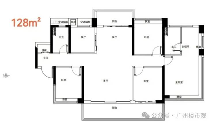 6. 建面约116㎡ 四房两厅两卫(南北对流)