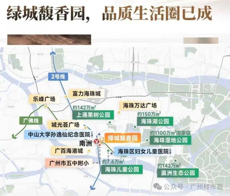 绿城馥香园位于海珠区南洲路核心地段,隶属于海珠湾心板块,紧邻海珠客运站周边成熟居住区,是海珠区近10年来出让的最优质地块之一。作为绿城自2014年拿下广钢地块后,再次布局广州中心区的重点项目,该地块承载着绿城深耕广州、服务广州的战略愿景,也凭借稀缺的城央地段,成为连接海珠、天河、番禺、荔湾四大区域的重要枢纽节点。
