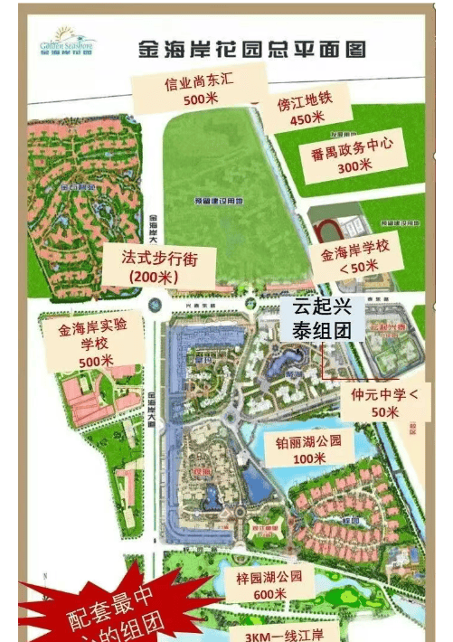 金海岸花园坐落于广州番禺区,位于番禺广场板块,定位为“番禺新中心”。项目总占地面积超过1000亩,是一个集交通、教育、商业和生态等多重优势于一体的大型综合性住宅区。小区内部拥有超20万方的艺术风情园林,并提供丰富多样的住宅产品,包括各类洋房、江景大平层以及独栋大宅,满足不同家庭的居住需求。作为一座超过20年的成熟大盘,金海岸花园不仅提供了丰富的教育资源,还坐拥3公里延绵的江岸翠堤景观。