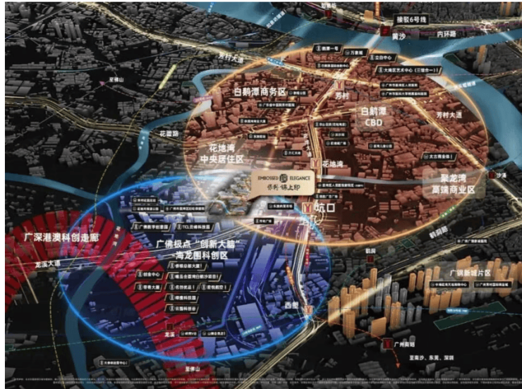 保利・星辰 STAR 雄踞荔湾区白鹅潭板块核心区位,白鹅潭作为广州重点打造的世界级地标商圈,定位为 “立足广佛、面向珠三角、走向世界” 的商贸中心与总部经济集聚区,是继珠江新城后,广州又一城市级核心板块广州市荔湾区人民政府。近年来,区域迎来政策、产业、商业多重利好集中兑现,华润万象城、聚龙湾太古里、白鹅潭大湾区艺术中心等顶级地标相继落地,总投资超千亿,城市界面全面更新广州市荔湾区人民政府。同时,白鹅潭承接广佛同城核心枢纽功能,是广州连接佛山的核心门户,享受双城发展红利,土地价值持续攀升,未来潜力比肩珠江新城。项目所处花地湾片区,作为白鹅潭规划中的中央居住区,配套成熟、居住氛围浓厚,兼具核心 CBD 的繁华与宜居社区的静谧,是广州中心四区不可多得的价值洼地。