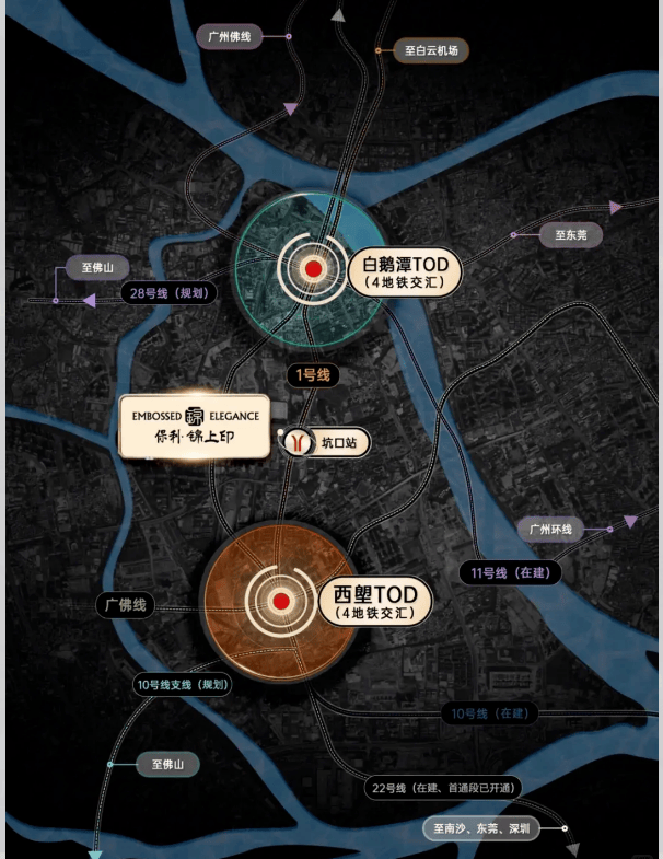 交通是项目核心优势之一,项目距地铁 1 号线坑口站仅 600 米,步行约 8 分钟即可直达,1 号线贯穿广州东西,5 站直达越秀公园、海珠广场,一线串联荔湾、天河两大 CBD,通勤、出行高效便捷。同时,周边规划地铁 22 号线,未来可实现双地铁交汇,22 号线串联广州南站、白鹅潭、白云机场等核心枢纽,进一步提升出行效率,实现大湾区 1 小时生活圈广州市荔湾区人民政府。